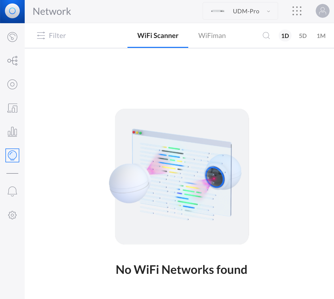 Some lookups online suggested I use the "Insights" page on the UniFi portal, but I get a "No WiFi Networks found" error when I do:
